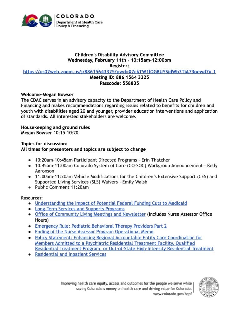 We remain committed to transparency and will continue to provide updates as decisions are finalized. Thank you for your continued partnership and engagement as we work to support Coloradans who rely on these essential services.